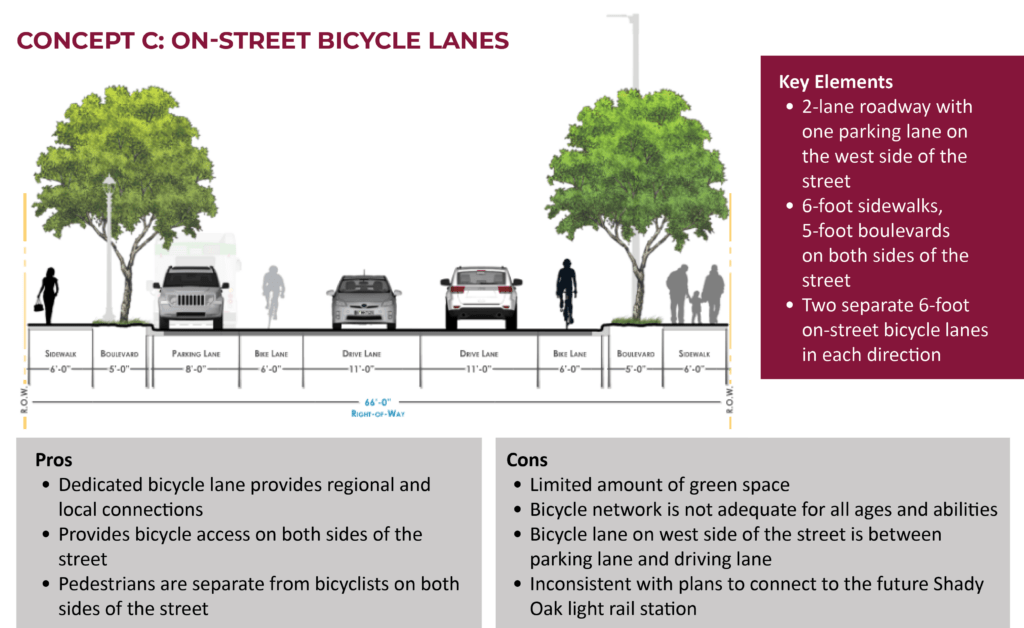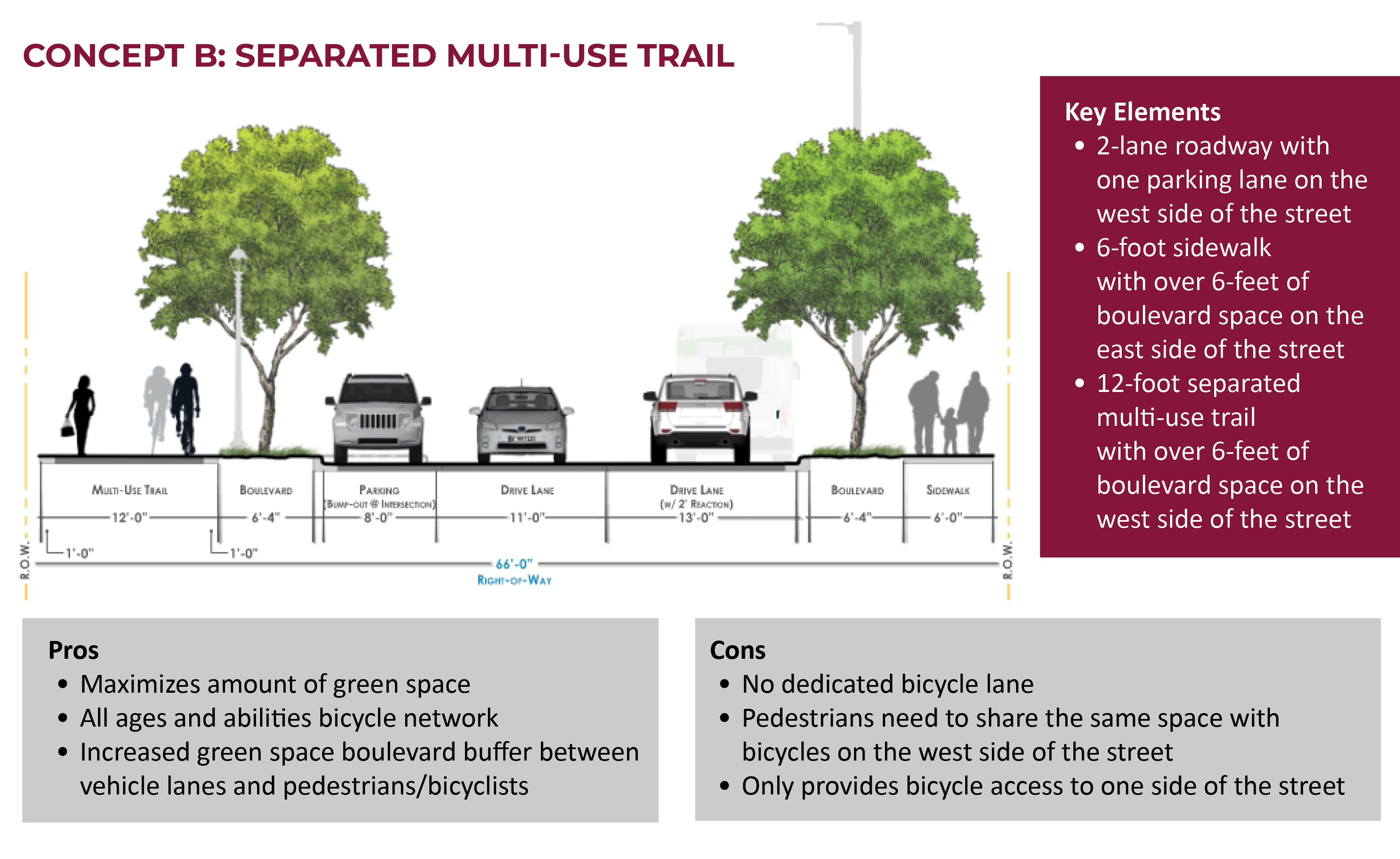 - Increased green space boulevard buffer between vehicle lanes and pedestrians/bicyclist