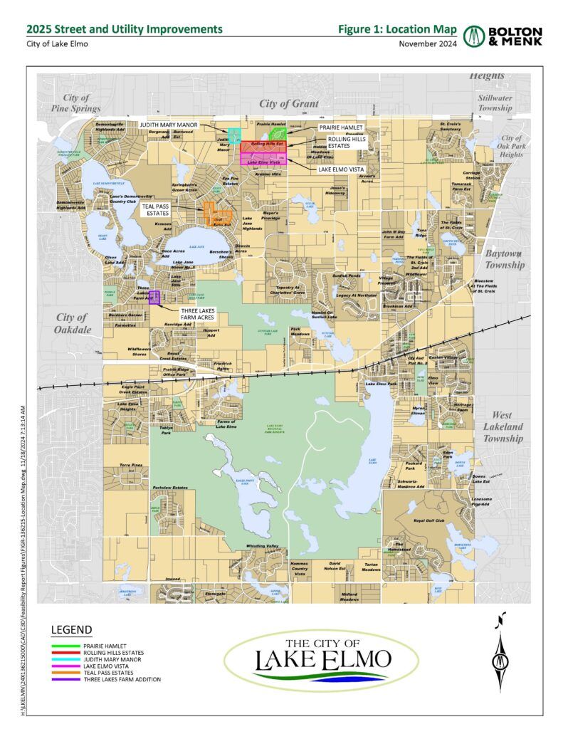 Preliminary assessments have been established in the neighborhood feasibility reports. Each feasibility report has been accepted by the Lake Elmo City Council. Preliminary assessment rolls are available at the bottom of this page under “attachments.” Each impacted property is included in the roll. The preliminary assessment amounts are based on estimated project costs and are not final. Once construction is complete for the project, a final assessment hearing will be held and the City Council will consider the adoption of final assessment amounts. Please see the feasibility reports for additional information on assessments.
